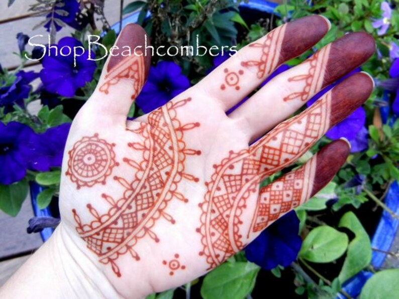 Apply henna oil where you wish to apply henna with the help of a cotton swab. 1 box (12) of singh reddish brown 100% natural henna cone. It had over 50 stencils that would make approximately 30 henna designs. Contents per 10ml jagua gel starter kit. 3 different size nozzles for different style tattoos and 3 stencils which you apply to the desired tattoo area and henna through to create easy tattoos.